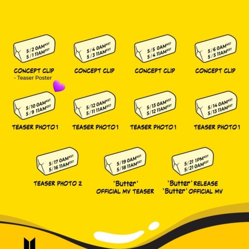 신곡 'butter'(버터)는 오는 5월 21일 전 세계 공개될 예정이고, 오는 24일 빌보드에 또 다시 오르게 될 예정이니 많은 관심을 가지면 좋겠습니다.